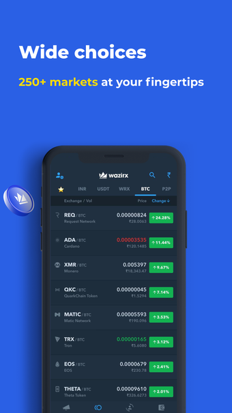 WazirX is een exclusieve app voor mensen om cryptocurrency te kopen en verkopen. Het biedt het gemakkelijkste, veiligste en snelste platform voor iedereen om hun op crypto gebaseerde rijkdom te krijgen, ongeacht hun achtergrond. Deze app is de beste plek om Bitcoin, Ethereum en meer te kopen.